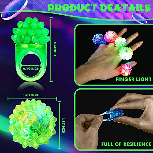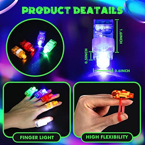 - Colorful Finger Lights: these LED ring toys will emit colorful with 4 colors, blue, red, green and white; Each LED rings have a different color, which enables them to show wonderful and beautiful light effect