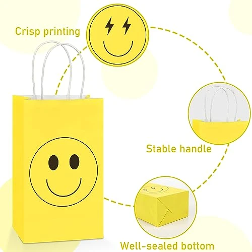 - Durable paper material: Smile face goodie bags are made of high quality materials, reliable and sturdy, not easy to tear or wear, lightweight and portable, can hold many candy, crafts, small gifts and other items, suitable for repeated use.