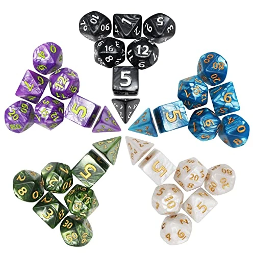 - 5 sets of 7 die dice include 5* D20, 5*D12, 10*D10 (0-9 and 00-90),5*D8, 5*D6 and 5*D4 dice