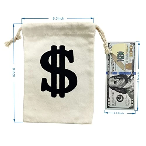 - Canvas money bag: made of canvas, durable and not easy to pillow. It measures about 6.3 x 9 inches. Help you place some items.