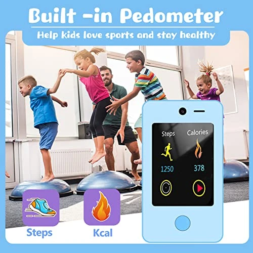 - Practical Kids Phone Toy: Kids phone supports three alarm clock settings to remind kids to wake up, take part in activities, etc. Pedometers, stopwatches, timers assist children with movement, such as walking, racing, etc. Let children develop good exercise habits.The smart kids phone includes a portable lanyard for easy carrying and moving.