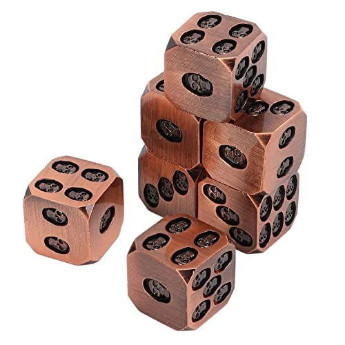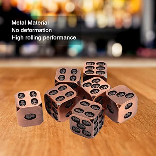 Arsor Skull Bones Dice, 7pcs Six Sided Skeleton Dice Metal Inlaid Skull Dice With Storage Box Club Pub Party Game Toys Dice DND Dice Set For Club Pub Halloween Party(Antique Red Bronze)