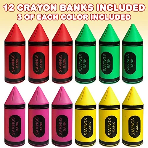 - FUN PARTY FAVORS: Looking for favors for that crayon-themed birthday party? Goodie bag fillers that work with just about any theme? These 6” crayon coin banks make memorable treats. Also great as game prizes, teacher rewards, and holiday stocking stuffers. For ages 3+