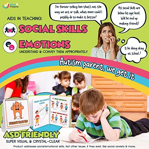- HELP REDUCE ‘BEHAVIORS’ LIKE SCREAMING, HITTING, ‘MONOPOLIZING’ SITUATIONS, & MORE- Effective SOCIAL and EMOTIONAL-EXPRESSIVE skills education aids (+our flipbook also acts as a look& deal-with emotions aid tool); ULTRA-CONCISE, SIMPLE,& TO THE POINT – Feel like sometimes your ASD child needs(/wants) to express or act in a certain way unsuccessfully (due to social skills below his age level/lack of ability to express emotions- causing frustration-based ‘behaviors’)? this bundle is to support YOU