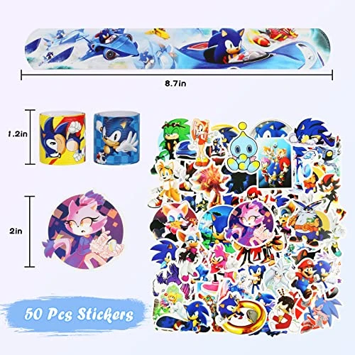 - Style and Size:12 slap Bracelets with different designs (3 of each) and 50 non-repeating waterproof stickers,Each slap wristband measures about 8.4 inches. Easily circles your wrist with a slap,suitable for most boys girls and toddles.