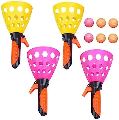 - Pop and catch launcher toss game pop launcher launch and catch balls double play balls: the product is made from plastic, they are and suitable for playing in the backyard, park, beach or pool.