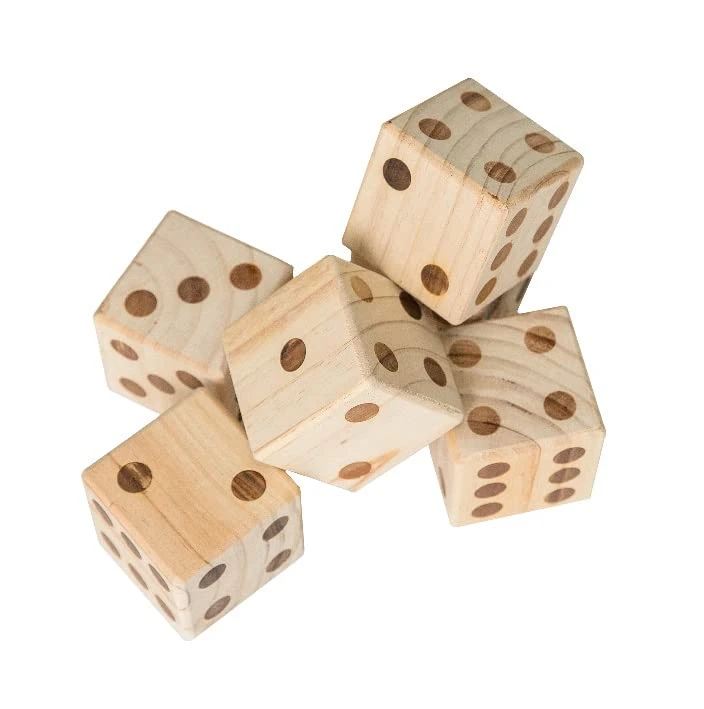 - DURABLE HARDWOOD: These jumbo wooden dice give you life-size, durable fun. They are made of high-quality wood from responsibly sourced trees. Each dice is sanded smooth hardwood with branded numbers to ensure that the numbers will never fade and your dice will last for years to come. You can use them to play in summer, winter, fall, or spring!