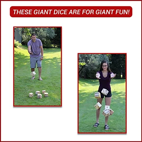 - GO PLAY: Play any of your favorite dice games like yatzee, or any other with this amazing oversized backyard games giant dice set! It is the perfect way to get the family together outside, or to get a group of your adult friends together at a BBQ! These Giant Dice are for giant fun. Think of any dice game you can play and play it BIG! The freedom to choose which game you play means you can custom tailor the play to match any age or skill level!