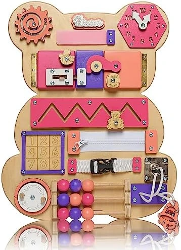 - WOODEN TOY. Our educational toy are designed for toddlers so we care about safety! Fidget board is made from the high-quality materials and carefully handmade without any sharp edge