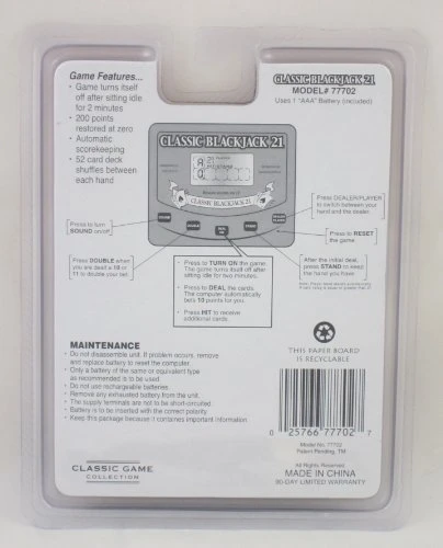 - Classic card game of Blackjack in a convenient handheld, electronic version/
