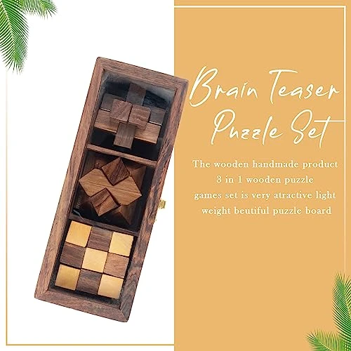 - ✅WOODEN PUZZLES FUN TOOLS: The great brain logic games teasers kids puzzles and adults are made of 100% natural wood. Durable teak wood has been used, and every piece of the set is handcrafted with great precision to ensure an easy and correct fit.
