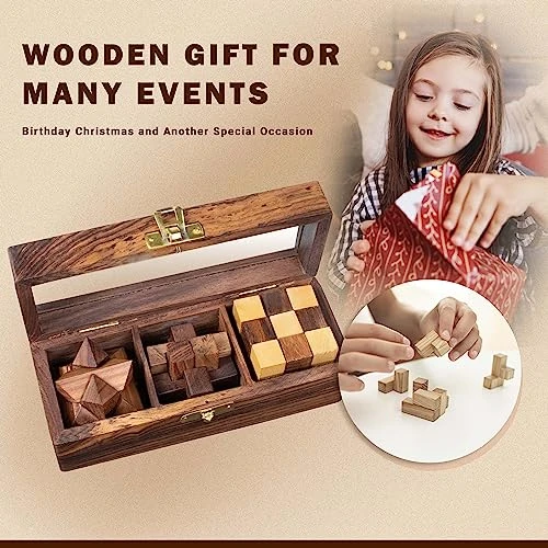 - ✅3D WOODEN PUZZLE: This Game Have 3 compartments Diagonal burr, snake cube, star puzzle & notched stick, This game will give you the entertainment time in your family and friends, and these puzzle pieces are the cool wooden puzzle games for adults spending the time to complete! Also, you can keep your kids busy with this puzzle either because this is 3d puzzles.