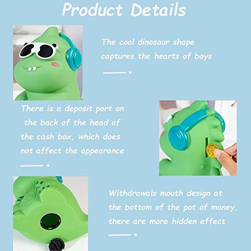 - BEST EDUCATIONAL GIFT FOR KIDS: Dinosaur piggy bank is the best choice for kids birthday and holiday gifts! Cool piggy banks are a great way to keep kids entertained and teach them the value of every penny at the same time! Kids can have their own little “safe” which is fun and educational and teaches the importance of saving.If you have any questions, please contact us, we will solve and reply within 24 hours.
