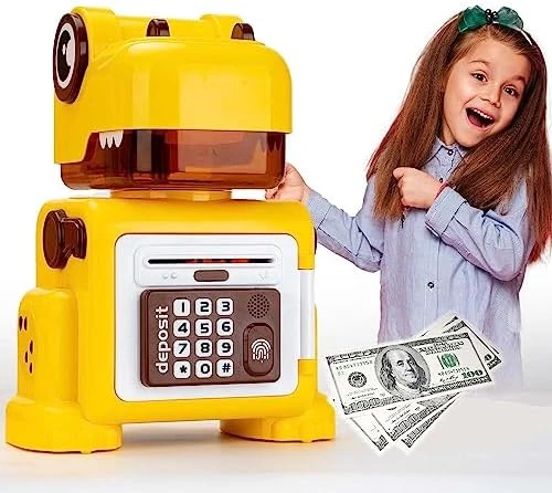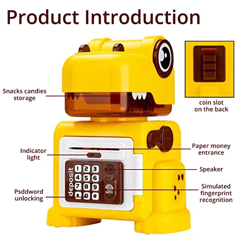 - 【Unique Design】piggy bank uses a unique dinosaur element design language, if your children are interested in dinosaurs, then they will fall in love with it. This piggy bank adopts the design of ATM deposit port and 4-digit password to guard your child’s money. What’s more,If you forget the password,you can press and hold # for 10 seconds to reset the password to 0000.