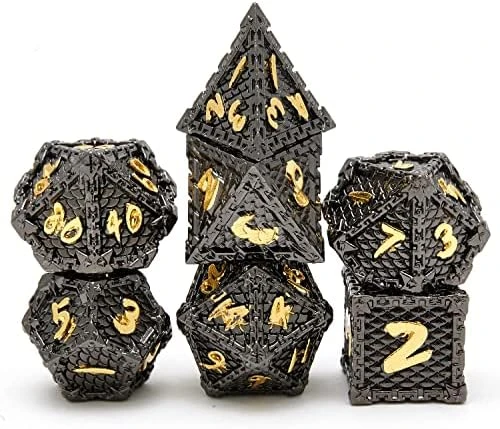 - 2. Weight: 9 ounces, regular size, dragon scale dice has more weight than ordinary dice. A set of dice has 7 pieces, including D4, D6, D8, D5, D12, D20 and d%.