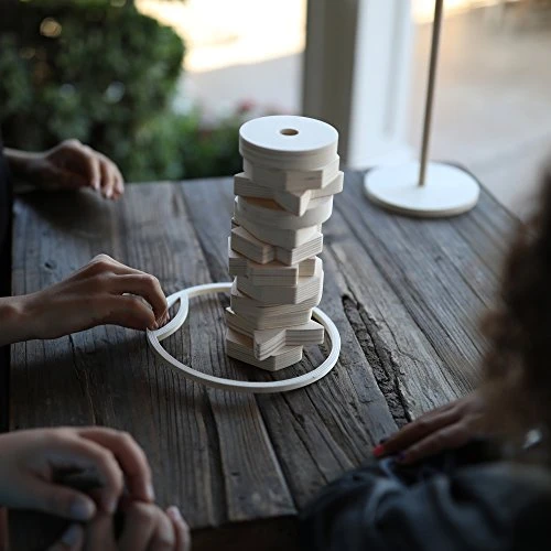 - Includes 1 pole/Base, 1 hoop, 12 wooden pieces in assorted shapes, and game guide