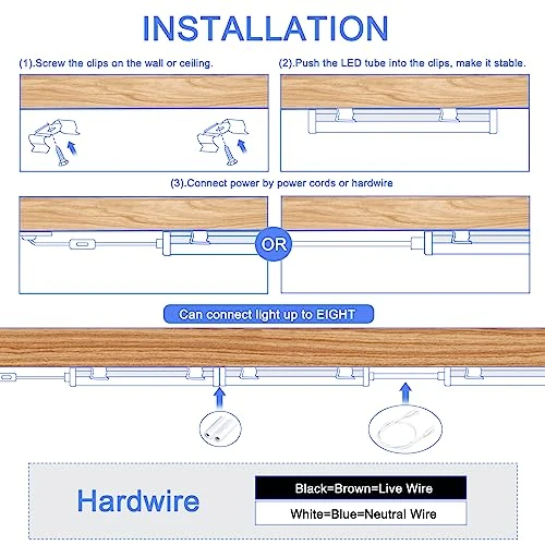 - Easy Installation: Our plug-and-play design makes installation a breeze. Simply use the included snap joints to hang up the light and insert the plug to turn it on.Linkable: The extendable design of our 4ft LED shop lights allows you to connect up to 6 tube lights together with seamless connectors or 48-inch connector cords, providing you with customizable and efficient lighting for your garage.