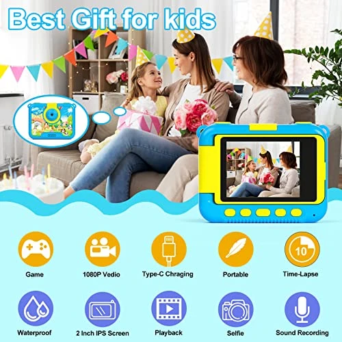- 【Best Gift for Kids】This camera is also a good partner for children daily life or holiday travel. The kids cameras are great birthday gifts, Christmas gifts and holiday gifts for boys and girls from 3 to 12 years old. The kids digital camera is extremely cute, small and lightweight. With video option in recording, explore your kids’ creativity.