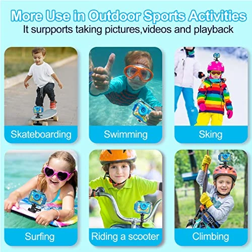 - 【Waterproof Kids Camera】kids camera with the waterproof case installed, you can dive underwater up to 100ft. Perfect for swimming, surfing, diving etc. This underwater case can provide excellent protection for camera from scratches and hit. Important tips: Do does not open the waterproof case underwater. In order to achieve a better waterproof effect, camera is sealed in a waterproof box.