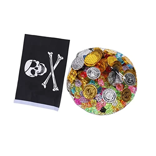 - Party : 501Pcs Pirate Gold Coins Flag Swing Set Spanish Doubloon Replicas Pirate Treasure Banner Playset Game Toy for Halloween Kid Party (Assorted Color).