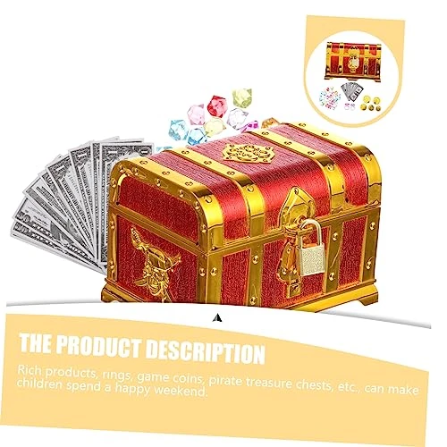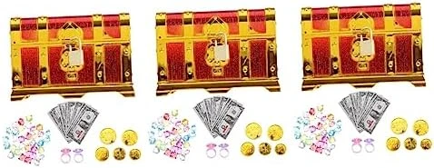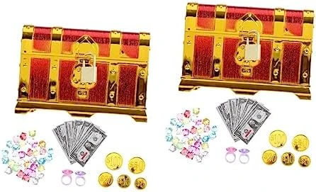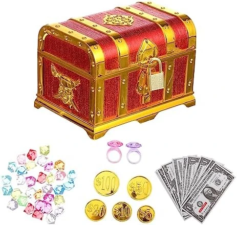 - Treasure chest for kid– including pirate boxes, pirate coins, gems, earrings, rings, banknotes.