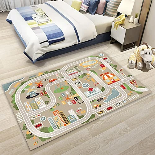 - Vivid cartoon life city design play mat with toy cars, roads, parks, traffic intersections, animals, etc, which draw attention and interests or words.