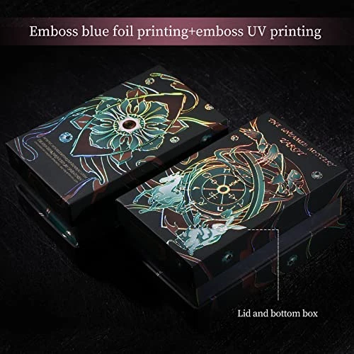 - Box: lid and bottom box with magnets with skin-like texture velvet lamination, emboss blue foil printing + emboss UV printing