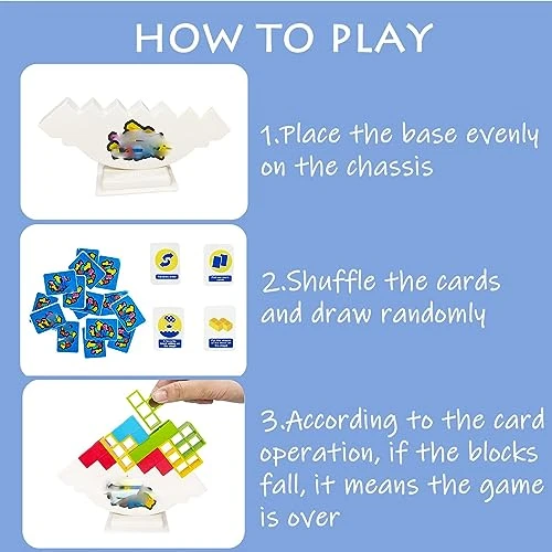 - [Easy to Play]: Place the base evenly on the chassis. → Shuffle the cards and draw randomly. → According to the card operation, if the blocks fall, it means the game is over.