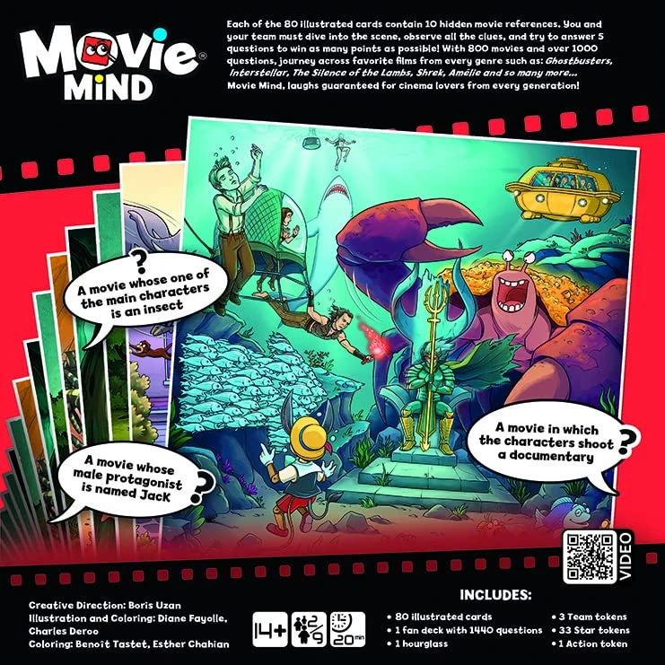 - 800 FILMS DEPICTED: Movies from a wide stretch of decades and genres are referenced in the questions and artwork on the 80 illustrated cards.