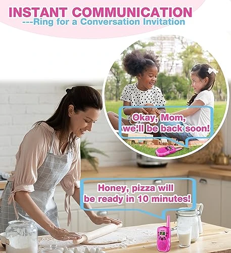 - 𝐈𝐍𝐒𝐓𝐀𝐍𝐓 𝐂𝐎𝐌𝐌𝐔𝐍𝐈𝐂𝐀𝐓𝐈𝐎𝐍 — 𝐑𝐢𝐧𝐠 𝐟𝐨𝐫 𝐚 𝐂𝐨𝐧𝐯𝐞𝐫𝐬𝐚𝐭𝐢𝐨𝐧 𝐈𝐧𝐯𝐢𝐭𝐚𝐭𝐢𝐨𝐧. Just press walkie talkies for kid button to send out a ring, inviting others to join the conversation swiftly. Whether you’re exploring the outdoors, coordinating activities, or simply having fun, our walkie talkies toys for girls will keep everyone seamlessly connected.