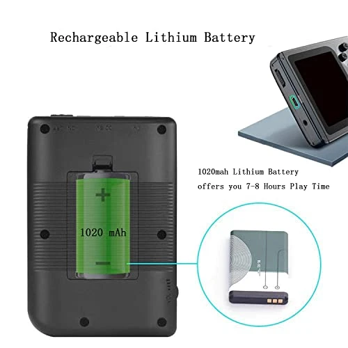 - Rechargeable Battery: The retro game console comes with a rechargeable 1020mAh lithium battery and USB cable, plug & play. 7-8 hours fun time per full charging. No worry about running out of power when traveling, camping and outside.