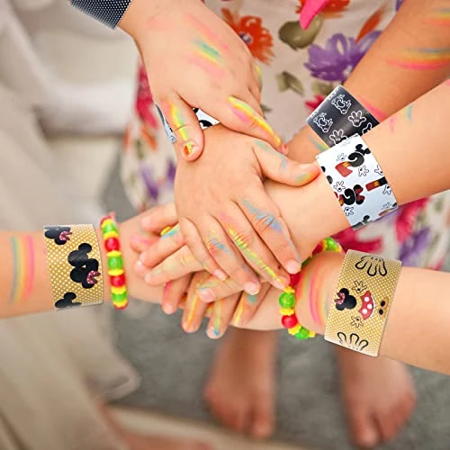 - Easy to Wear – Just simply slap the bracelet on your wrist, it will automatically adjust according to your wrist size to fit your wrist comfortably and will not fall off easily. Each party slap bracelet measures 8.5 x 1.2 in. Perfect for kids and adults