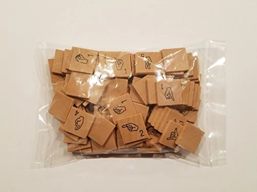- 100 ASL game tiles with point values and 2 “wild card” tiles for playing Scrabble
