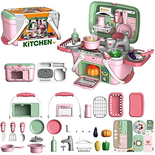 - 【Portable Design】Kitchen toys with a Portable Design, The Bottom can be used as a Storage Basket,Kids can be used After the Toys Neatly Stored Away, It can be in the Camping Trip to Give Children an Unforgettable Game Experience.