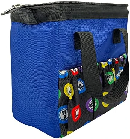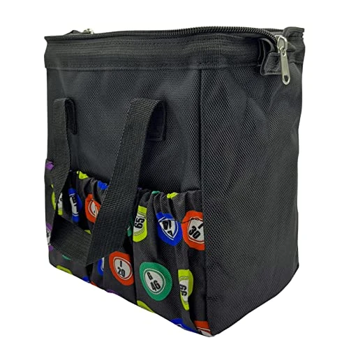 JUNWRROW Bingo Dauber Bags With 6 Exterior Pockets&3 Interior Pockets Black Bingo Tote Bag,Includes 100 Multi-Color Bingo Cards