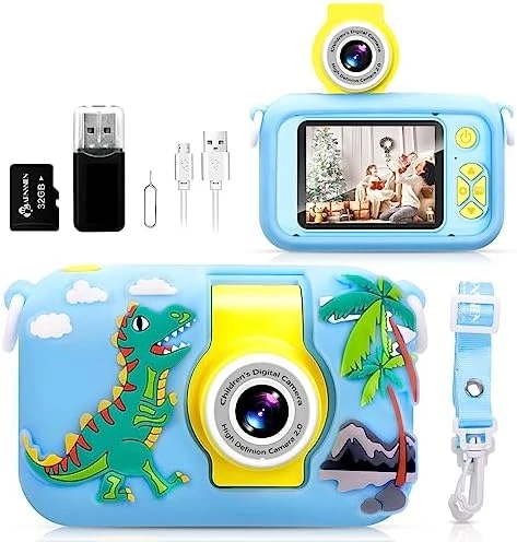 - 【Packing List】 1Pcs = 1*Kids camera+1* USB charging cable+1* 32GB TF card+1* User guide+1* Dual used stripe+1*Gift box package