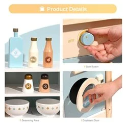 ROBUD Wooden Play Kitchen Set For Kids Toddlers, Toy Kitchen Gift For Boys Girls, Age 3+