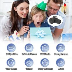 Selfie Camera For Kids, Portable Digital Camera Toy 8X Digital Zoom For Birthday Gift (Blue)