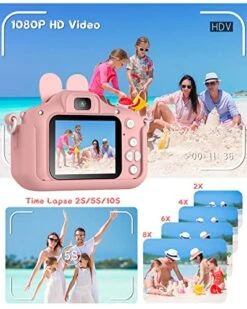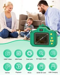 Kids Camera Dual Camera 2.0in IPS Screen 1080P Video Camera Toy With 32G Memory Card (Purple)