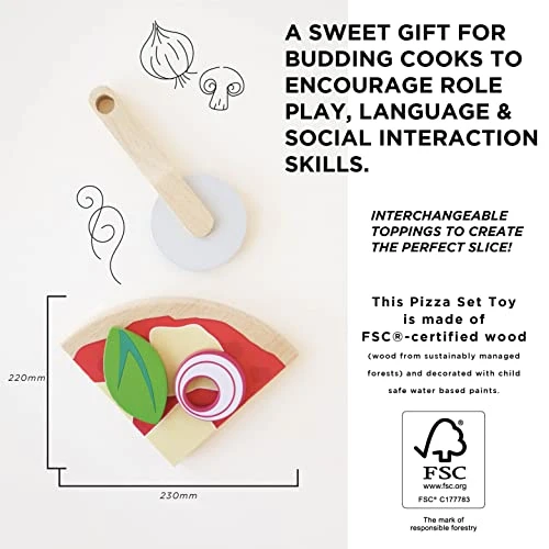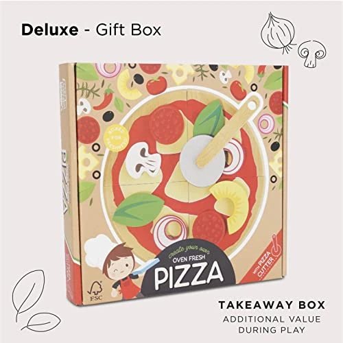 - KITCHEN & FOOD TOYS: This pizza wooden food toys set are the perfect toddler toys. Play together with this wooden toy pizza accessories and kitchen set accessories. With this fun wooden food for kids, your child will have fun whilst learning social skills