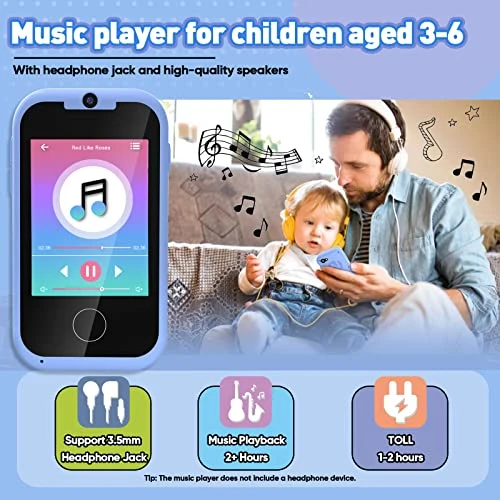 - ♫【Dual Camera】The phone toys for 4-6 year old girls boys is equipped with 8.0 Mega pixels and 1080P Video.Features Dual Camera,the kids camera can easily achieve dual front and rear shots.With pop photo stickers shooting, children can take some funny photos with family or friends.