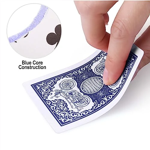 - Plastic-coated decks of cards for a smooth feel and extra durability, made from paper stock with blue core construction, nearly Casino Grade