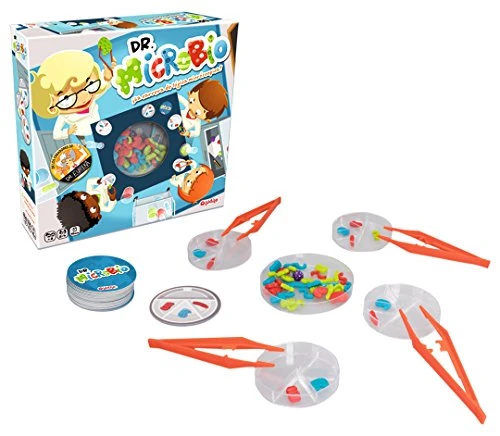 - Contains 49 microbes, 5 Petri plates, 4 tweezers and 54 game cards