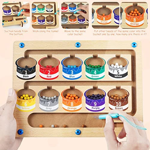 - ✅[Premium Material] The magnetic color and number maze board is made of natural basswood, with a smooth surface, natural and healthy, sturdy and durable. The rounded corners of the color sorting board are smooth and do not hurt the baby’s hands. And the closed magnetic beads can effectively avoid the risk of your baby swallowing, safe for little kids playing.