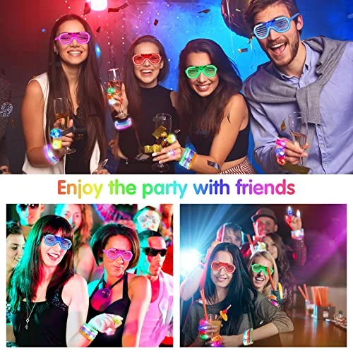 - Adjustable Light Modes: in this set of party favors, the glasses have 3 light emitting designs, and you can change the light to your liking by repeatedly pressing the switch button; The finger light is always bright, the bracelet is flashing, and the slow flashing automatically alternates; Each toy can emit a colorful light, which is enough to attract anyone and make you the brightest star