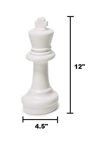 - GREAT FOR CUSTOMERS WITH LIMITED SPACE: MegaChess makes giant chess sets that are 8, 12, 16, 25, 37 and 49 inches tall. This set is our second smallest giant plastic chess sets. It is designed for smaller children or customers with less than five feet of space for their chess board. Standing between 12 and 8 inches tall, these large lawn chess pieces are surprisingly light enough for even the youngest players to move easily, yet large enough to resist the wind.