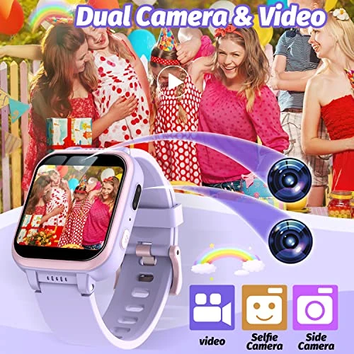 Meoonley Kids Smart Watch With Puzzle Games HD Touch Screen Camera Video Music Player Pedometer Alarm Clock Flashlight Fashion Kids Smartwatch Gift For 6-13 Year Old Boys Girls Toys