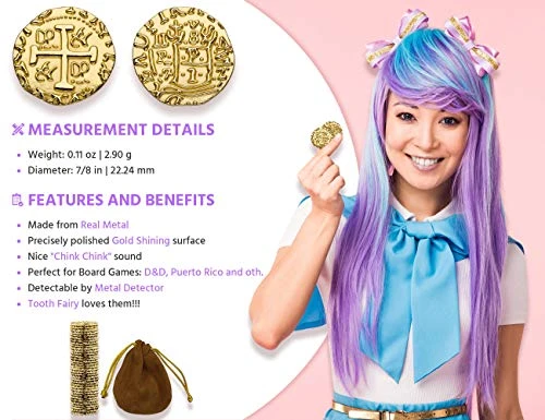 - GORGEOUS GOLD: Unlike others, our Spanish Doubloon Replicas are made from zinc and feature a shiny gold surface. This gives them that realistic “cha-ching” sound that you won’t find anywhere else