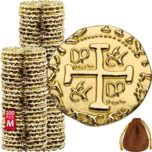- PERFECT TREASURE: Our Fake Gold Pirate Coins are detectable with a metal detector! This makes them the perfect treasure for a treasure hunt party. Our medium sized Fantasy coin measure 7/8 inch diam.