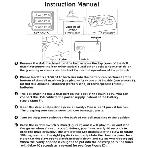 - 【DUAL POWER MODE & 60-SECOND CHALLENGE】latest version.Our claw machine features dual power modes – USB charging and battery power – so you can take the fun outdoors with just 3 AA batteries (not included). Let you enjoy the challenge anytime, anywhere! With a 60-second challenge mode, this game turns into a fun family competition!